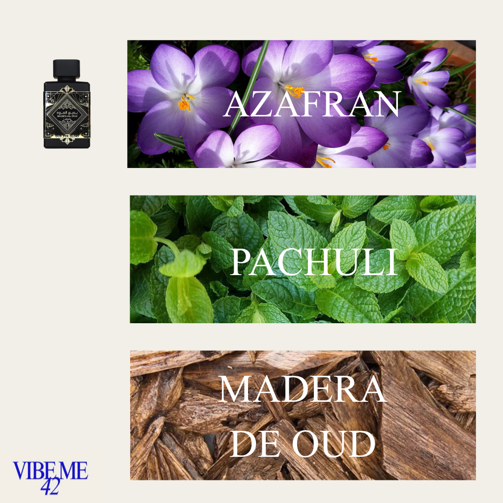 Las Notas de Salida son azafrán, nuez moscada y lavanda; las Notas de Corazón son madera de oud y pachulí; las Notas de Fondo son madera de oud, pachulí y almizcle.