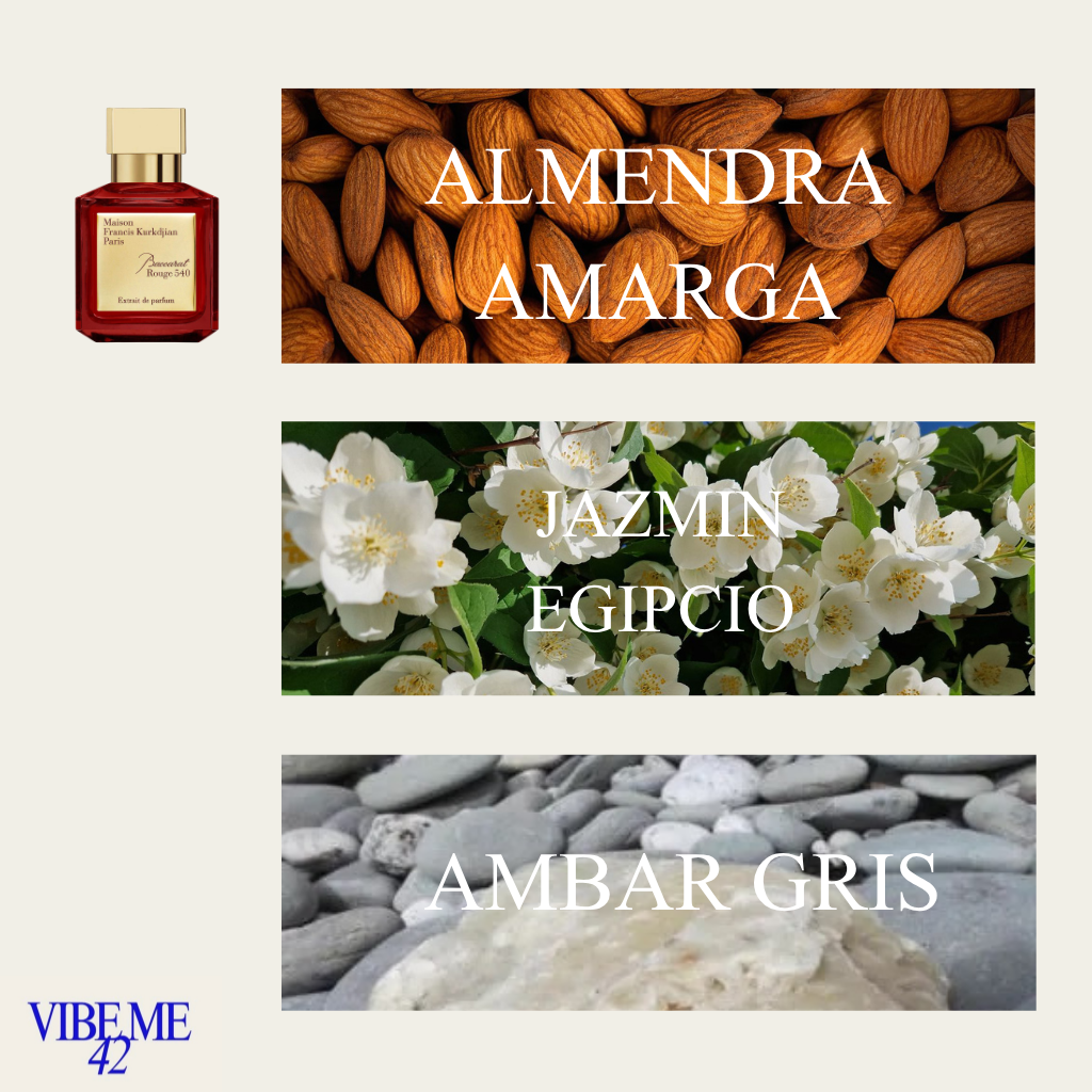 Baccarat Rouge 540 Extrait de Parfum de Maison Francis Kurkdjian es una fragancia de la familia olfativa Oriental Floral para Hombres y Mujeres. Baccarat Rouge 540 Extrait de Parfum se lanzó en 2017. La Nariz detrás de esta fragrancia es Francis Kurkdjian. Las Notas de Salida son almendra amarga y azafrán; las Notas de Corazón son jazmín egipcio y cedro de Virginia; las Notas de Fondo son ámbar gris, notas amaderadas, almizcle, ambroxan y cachemira.