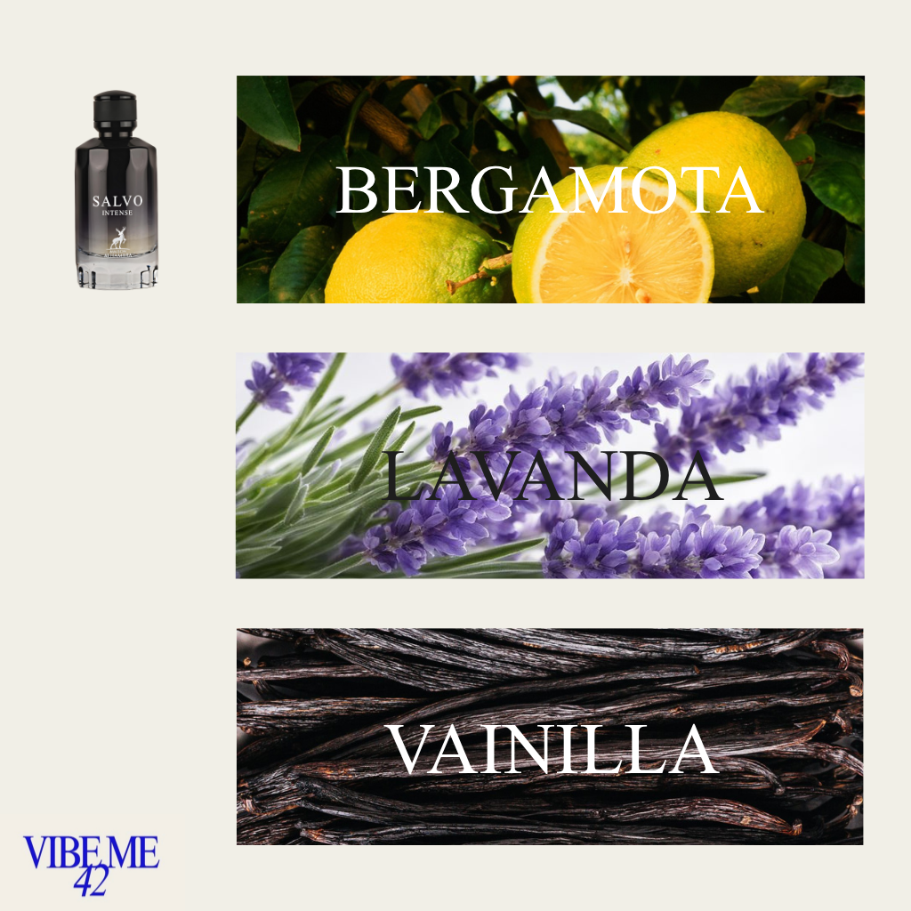 Salvo Intense de Maison Alhambra es una fragancia de la familia olfativa Aromática para Hombres. Salvo Intense se lanzó en 2022. La Nota de Salida es bergamota; las Notas de Corazón son lavanda, pimienta de Sichuan, anís estrellado y nuez moscada; las Notas de Fondo son ambroxan y vainilla.